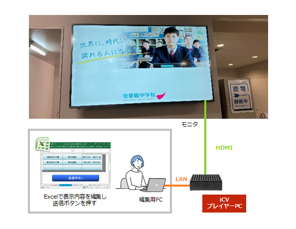 三重県の皇學館中学校様にデジタルサイネージを導入いただきました。来訪者に向けたお知らせや、