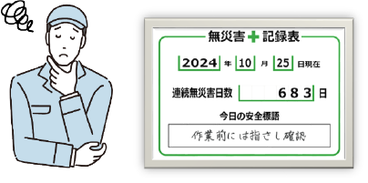 屋外に設置されている無災害記録表やお知らせ掲示板。日々の無災害日数更新やお知らせの変更に手間が掛かっていました。荒天時の更新作業は特に辛く、更新を忘れて日数がズレてしまうこともありました。